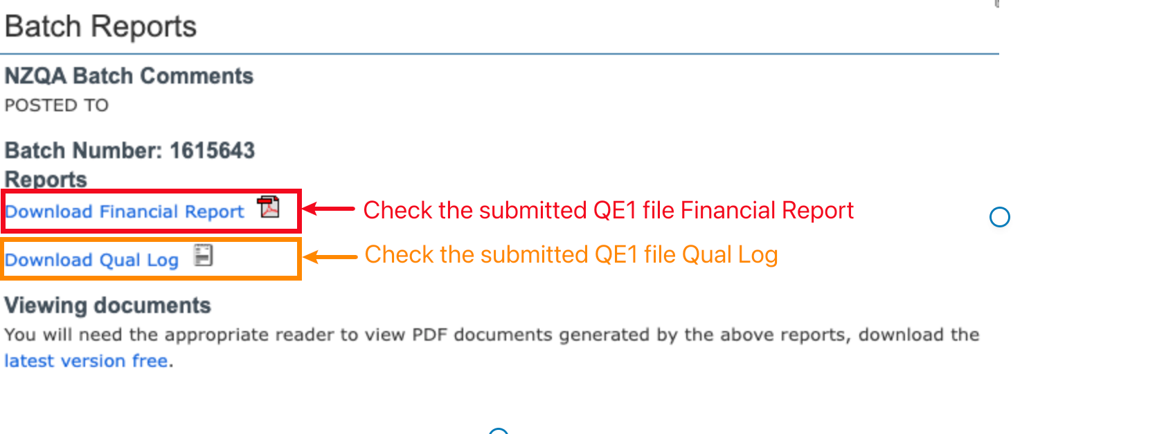 You will be redirected back to the NZQA Reports page, where you can now download the batch file.