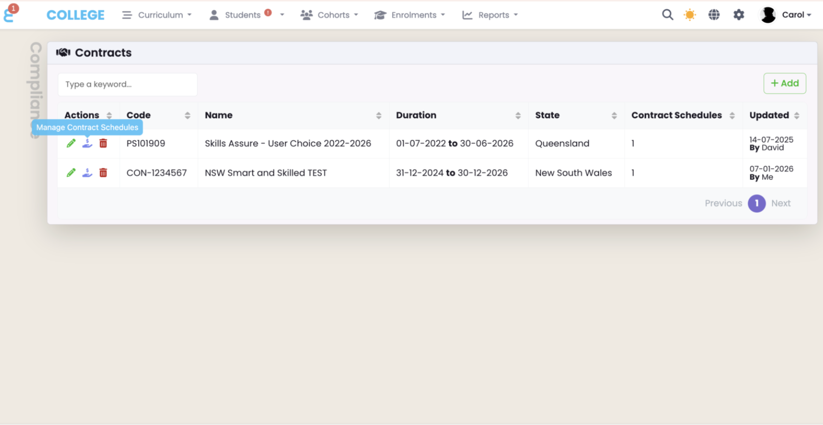 - Enrolments are linked to Contract Schedules, not directly to the contract