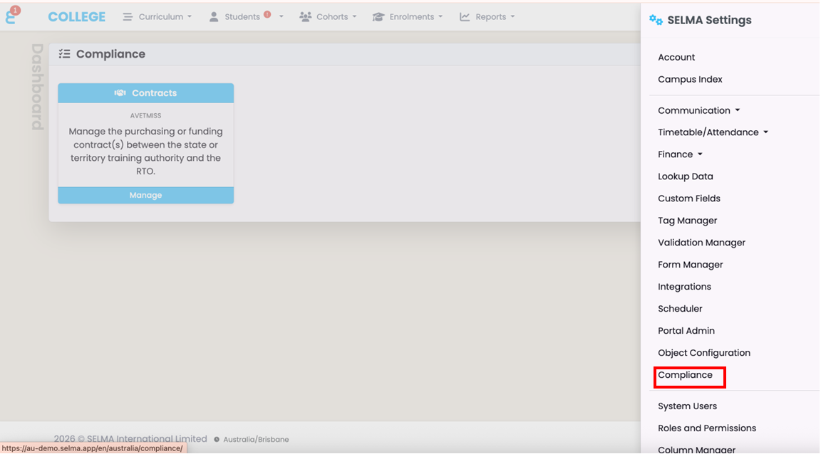 Figure 1: Accessing Contracts under Settings → Compliance