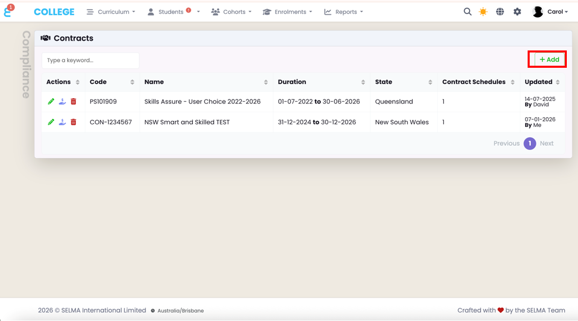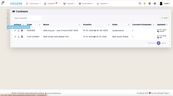 - Enrolments are linked to Contract Schedules, not directly to the contract