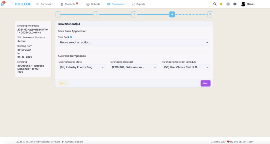 - Navigate to Enrolments