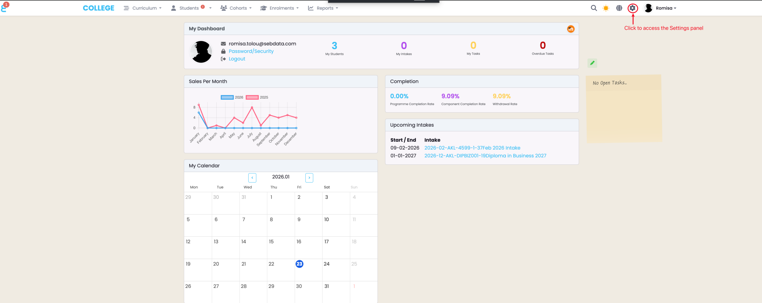Click the cog icon in the top navigation bar.