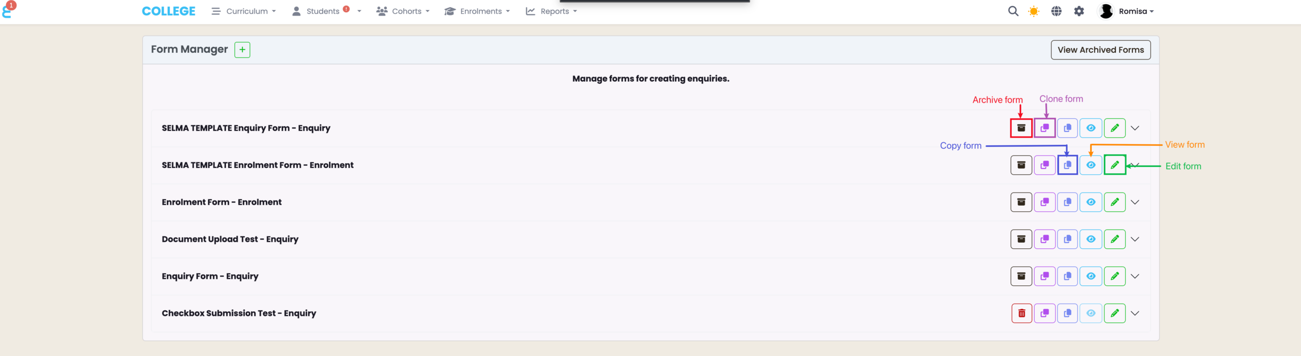 The Form Manager allows you to create and store Enquiry and Enrolment Forms.