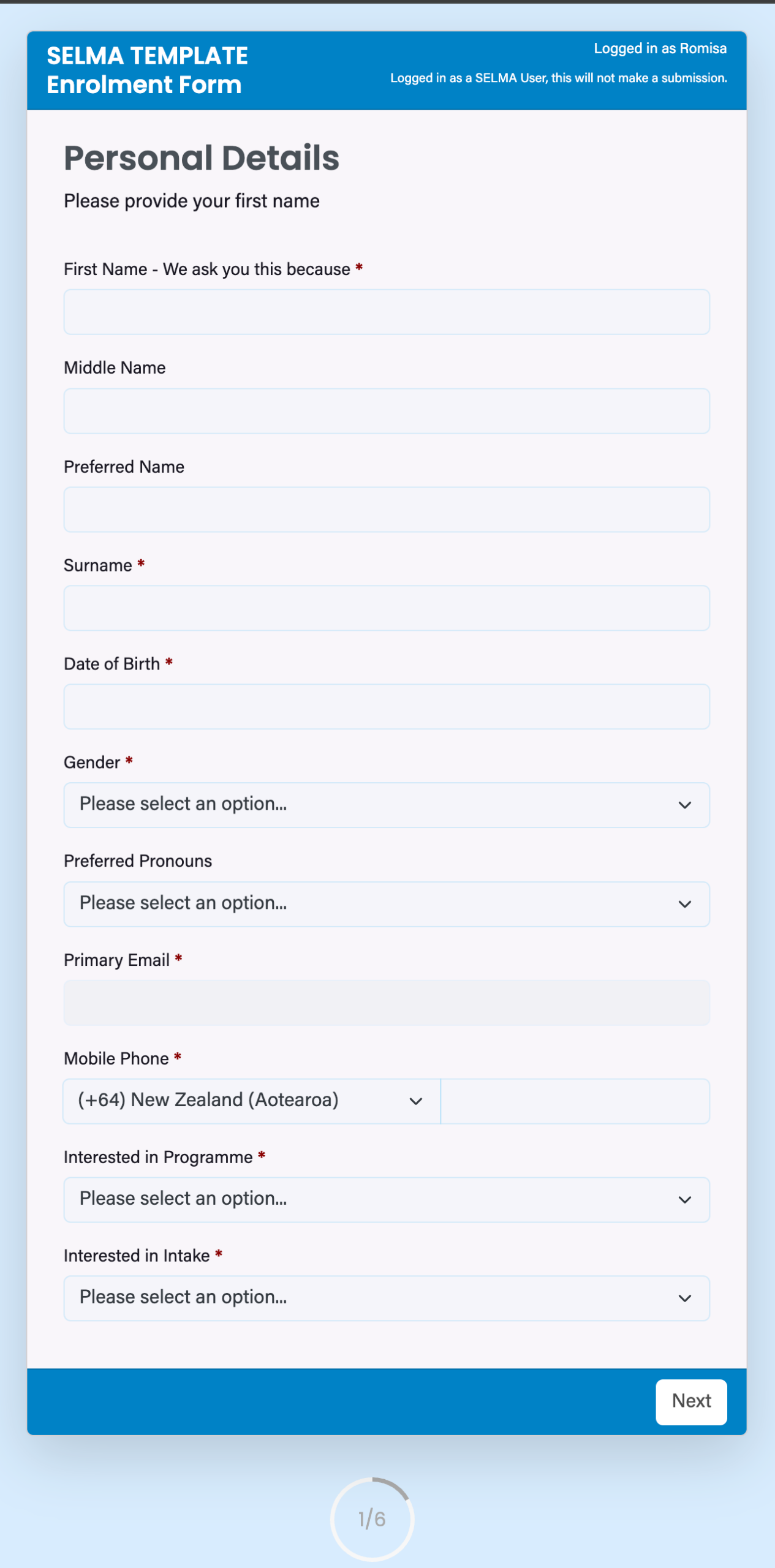 The Enrolment Form is used to create an Enrolment record for a Student application.