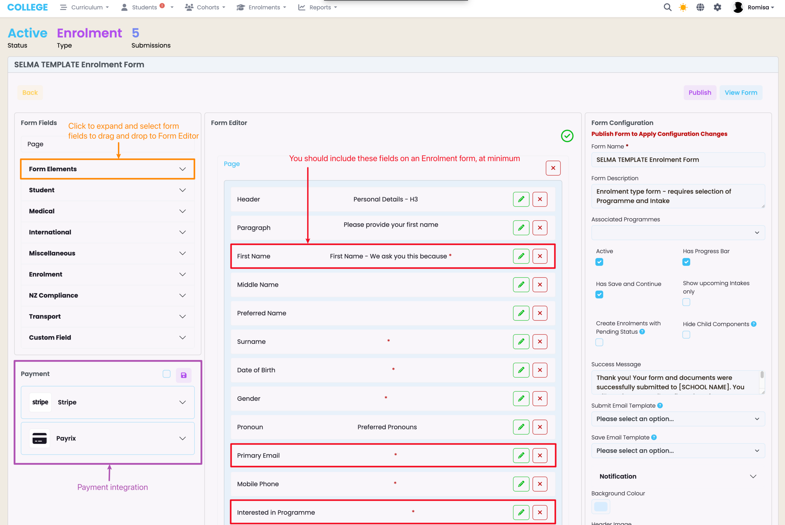 Figure 4i. Set-Up the Enrolment Form