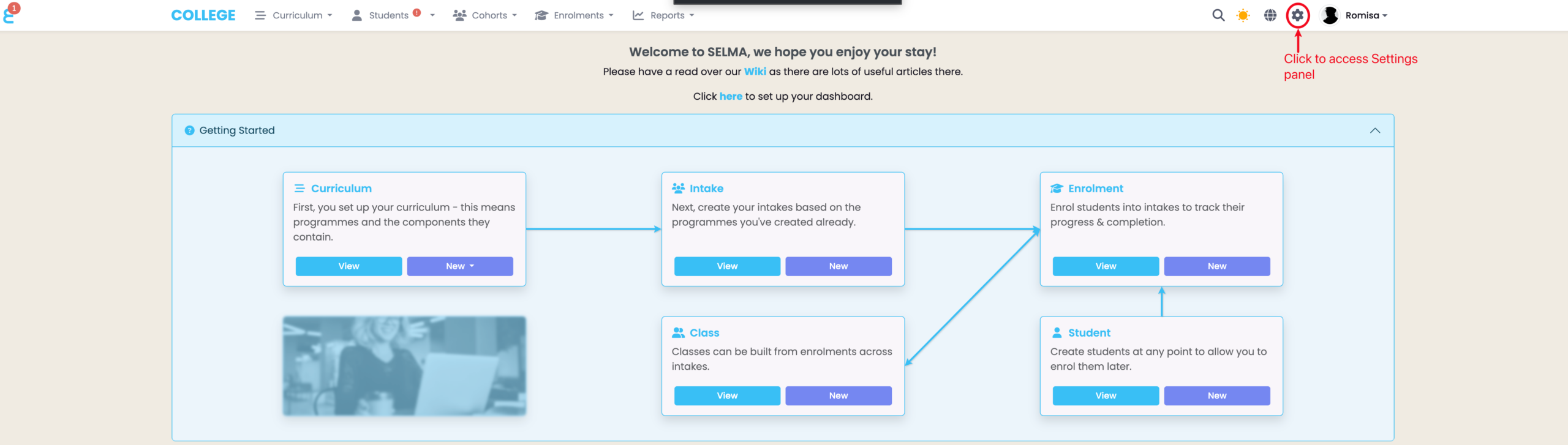 Click the cog icon in the top navigation bar.