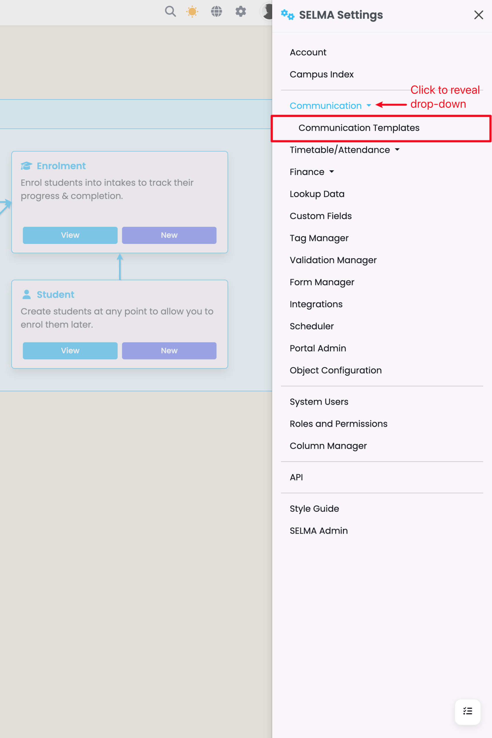 Click “Communication Templates“.
