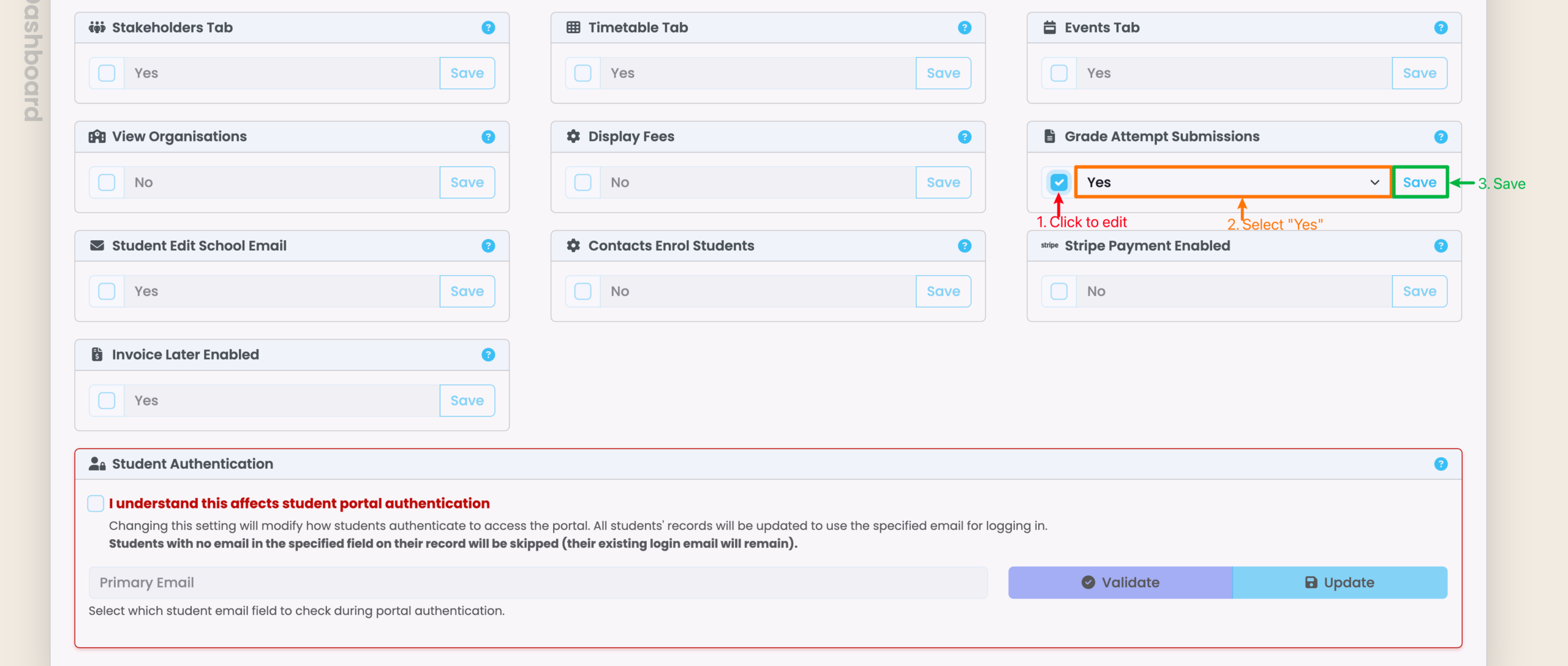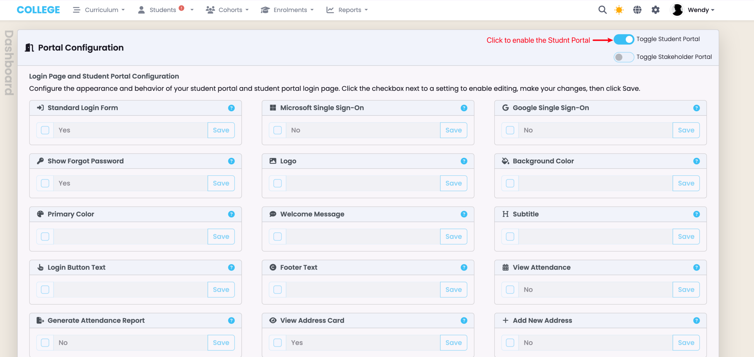 Only Users assigned with the Role: Primary User can enable Portal settings.