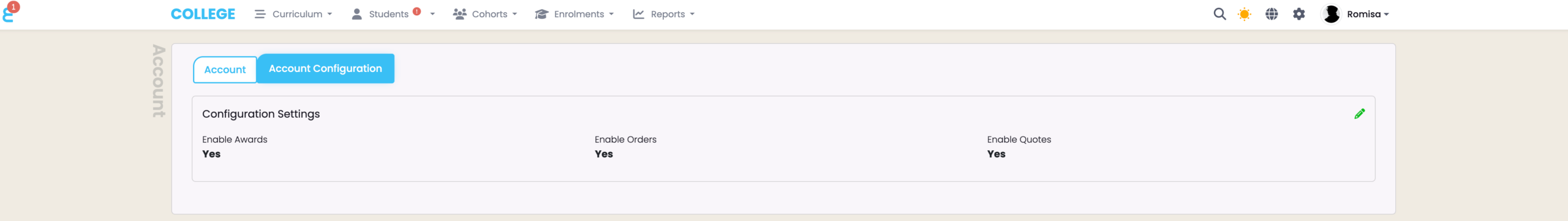 The Account Configuration Tab is where you should enable: