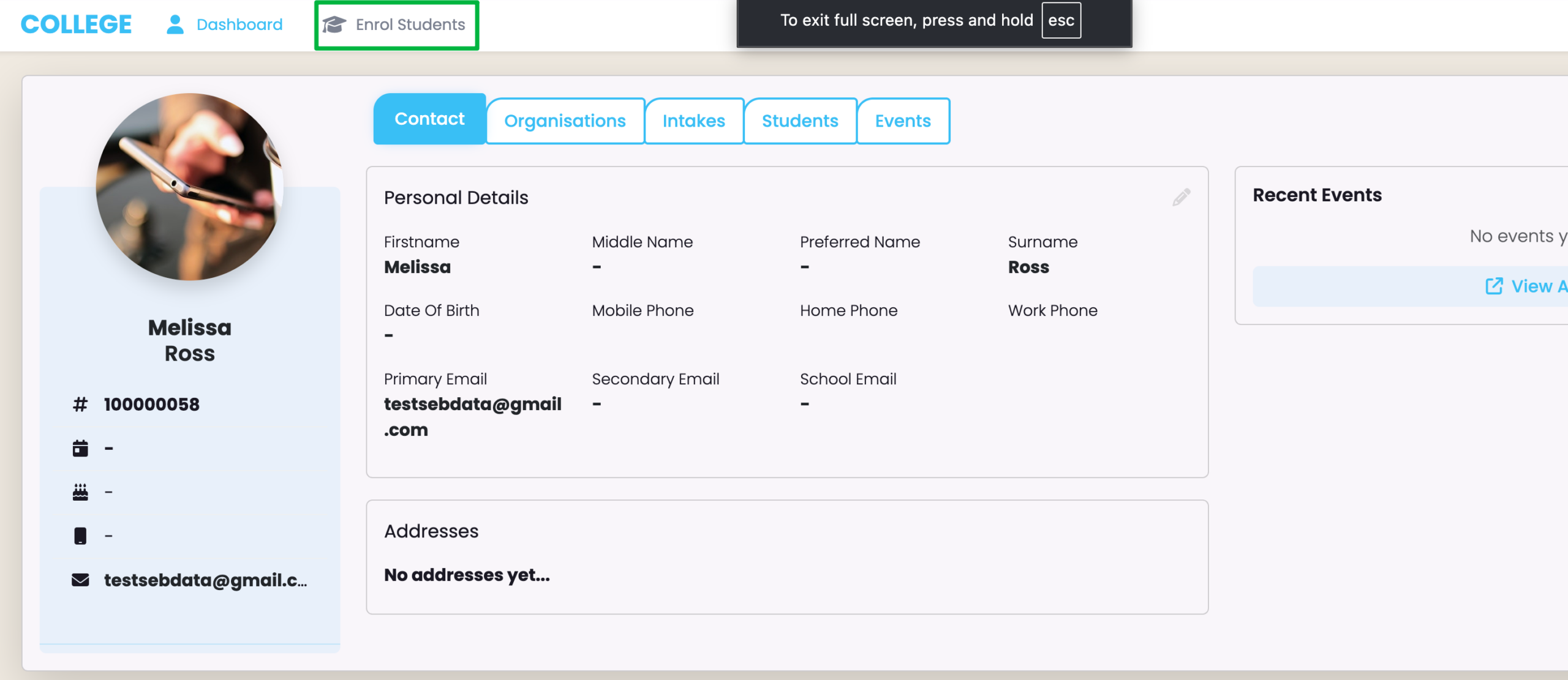 • NOTE: Once this is done, the Contact’s Fees tab will show the sum of fees associated with Enrolments.