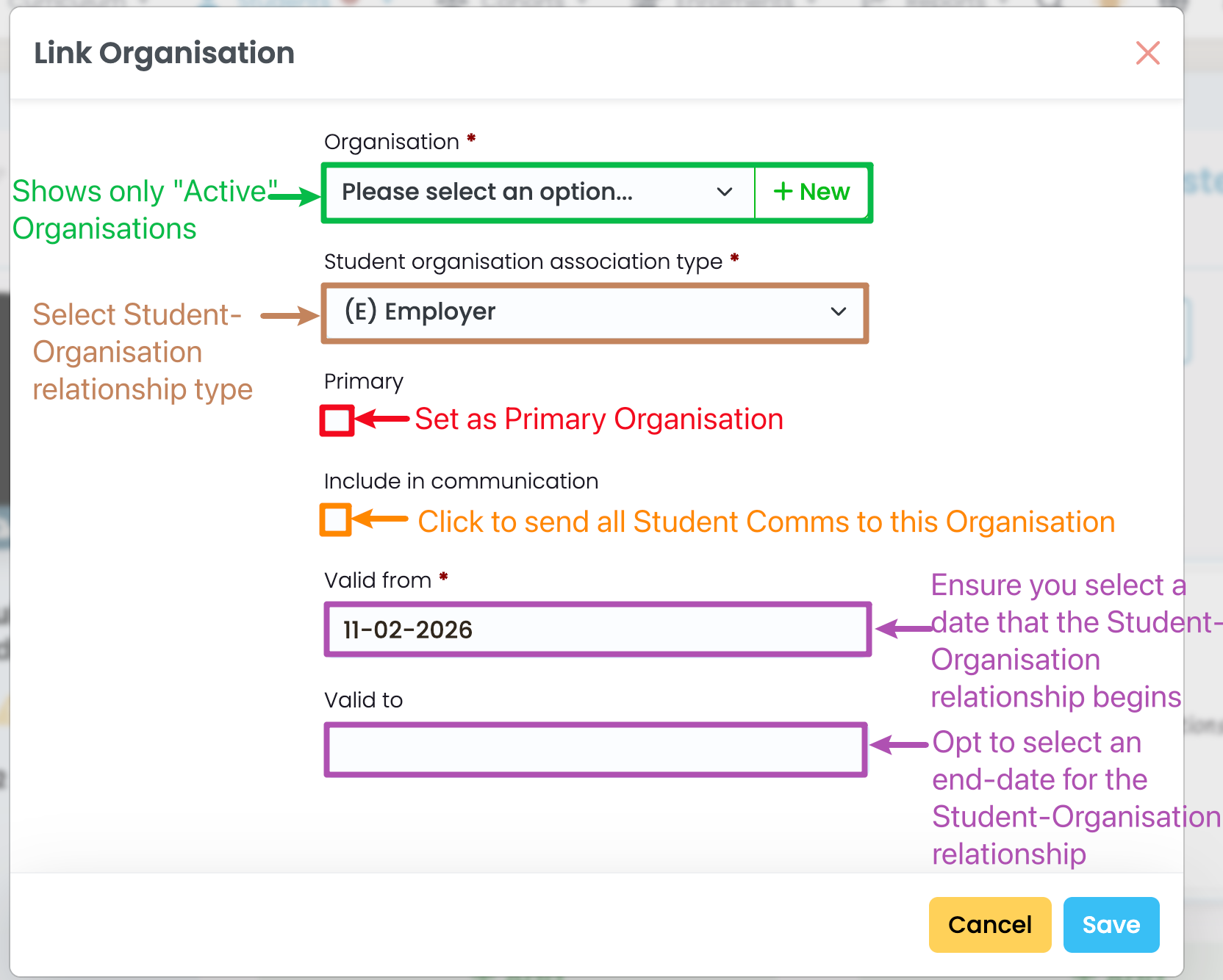 Figure 1ii: Link an Organisation to the Student