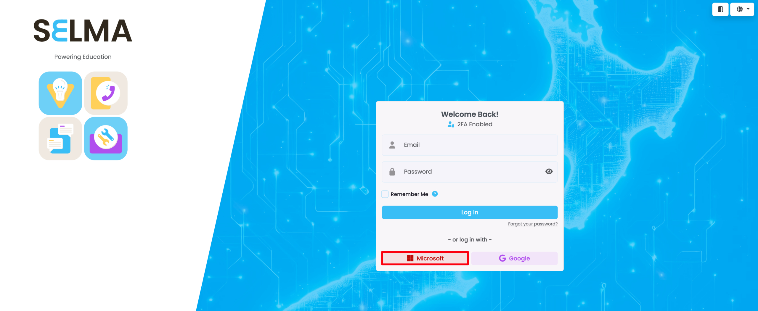 On the SELMA login screen, click the “Microsoft” button to sign in immediately.