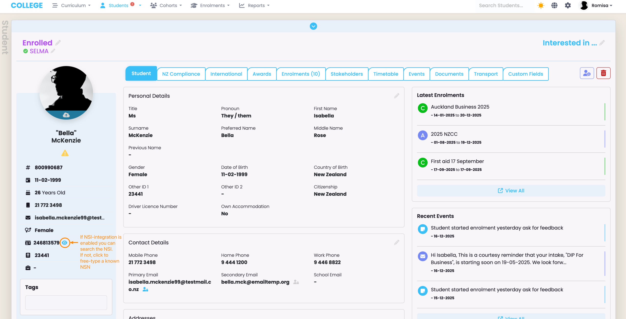 Figure 3. You can populate fields in a new Student record, by using the “Search NSI” function.