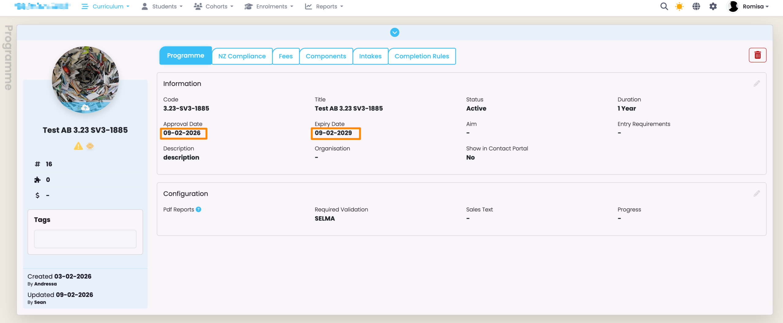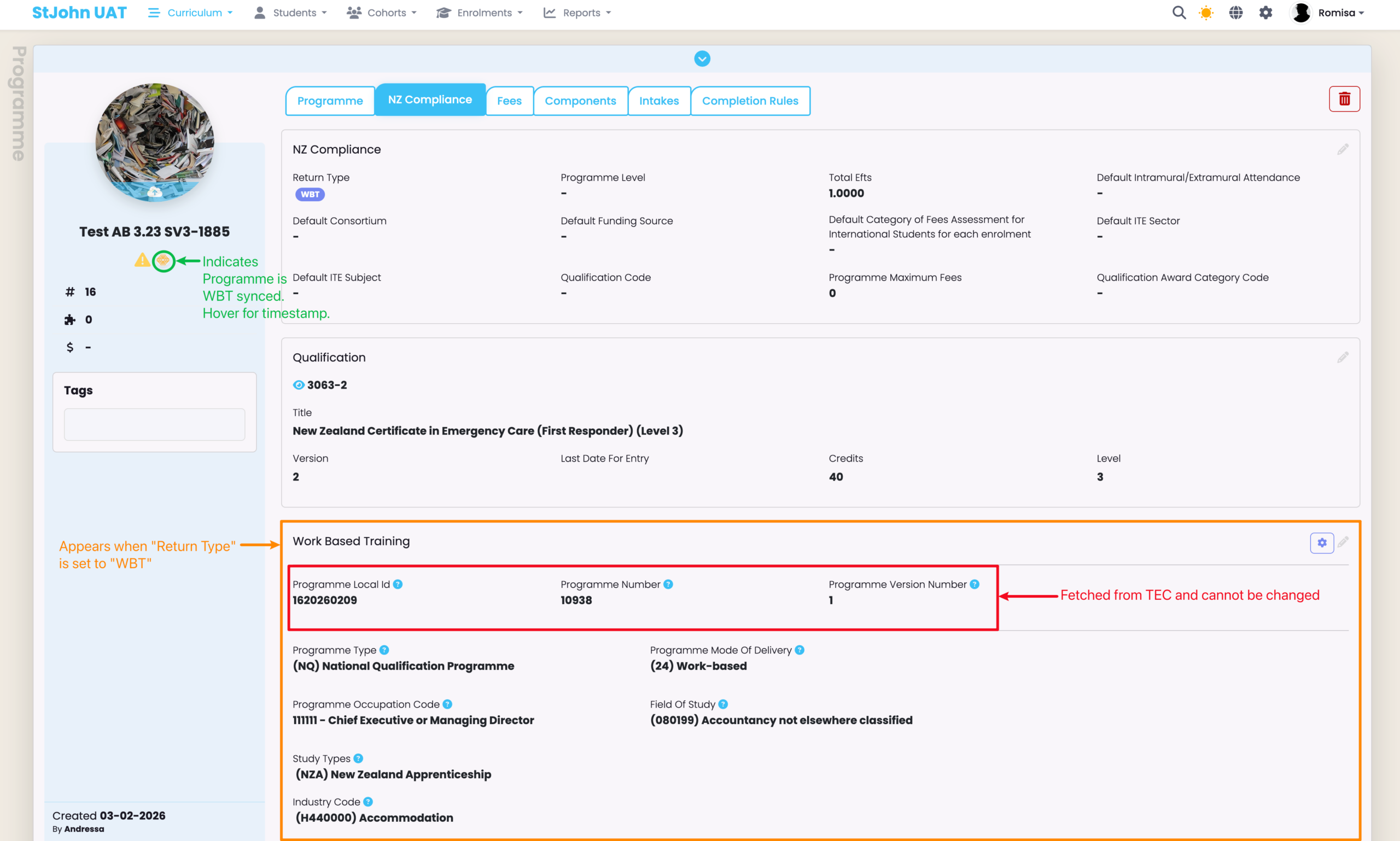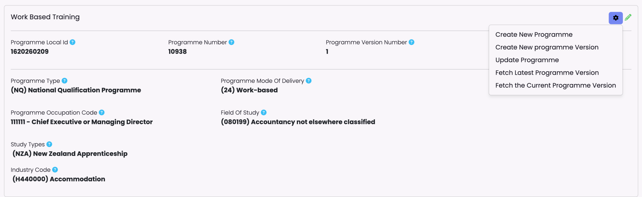 - NOTE: A new Programme version is needed if you want to change any field other than the “Expiry date” or the “Programme Maximum Fees” under the NZ Compliance card.