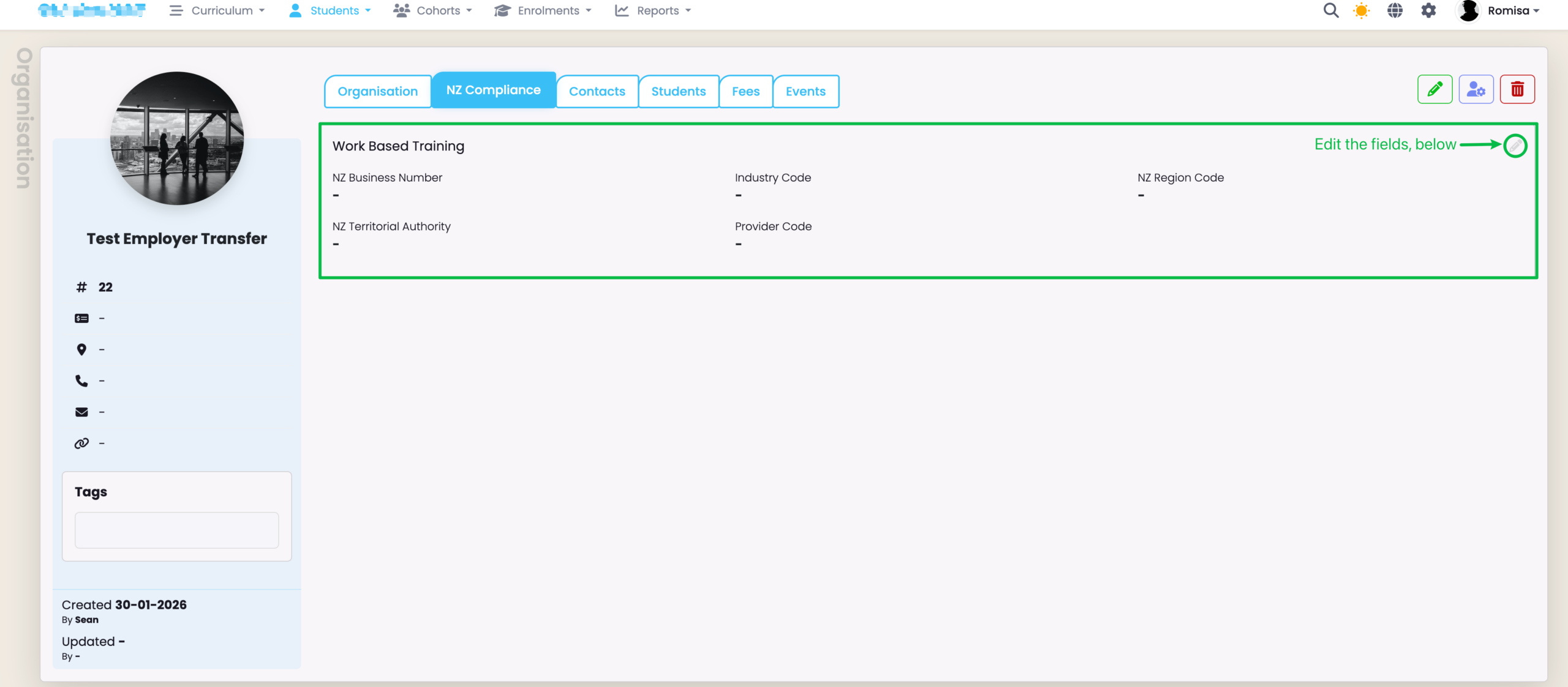 Edit the Organisation