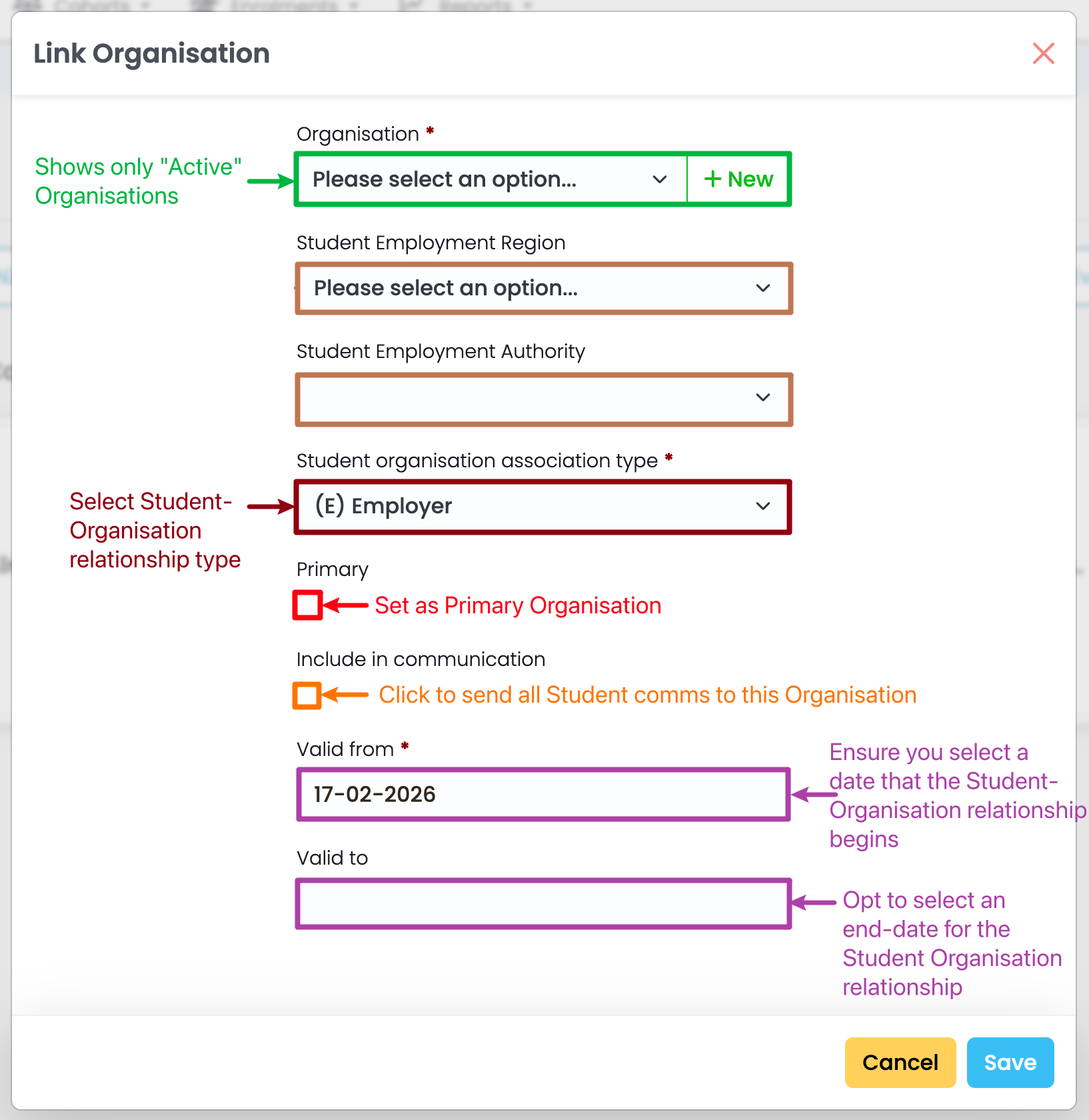 Link the Organisation to the Student